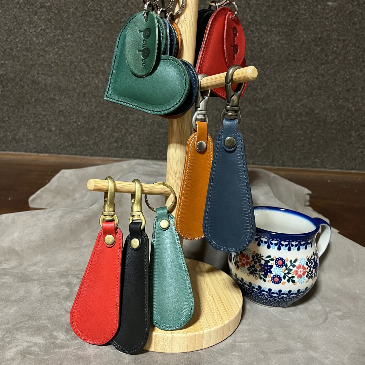 本革で一つ一つ丁寧に製作された小さな靴べらです。持ち運びに便利なサイズで、鍵やバッグにさりげなく添えて、いつでもあなたと共に旅を楽しむことができます。使うほどに革が育ち、あなただけの風合いを醸し出します。