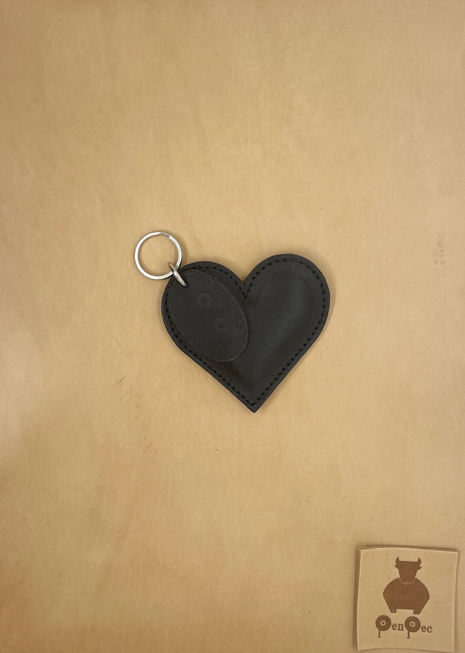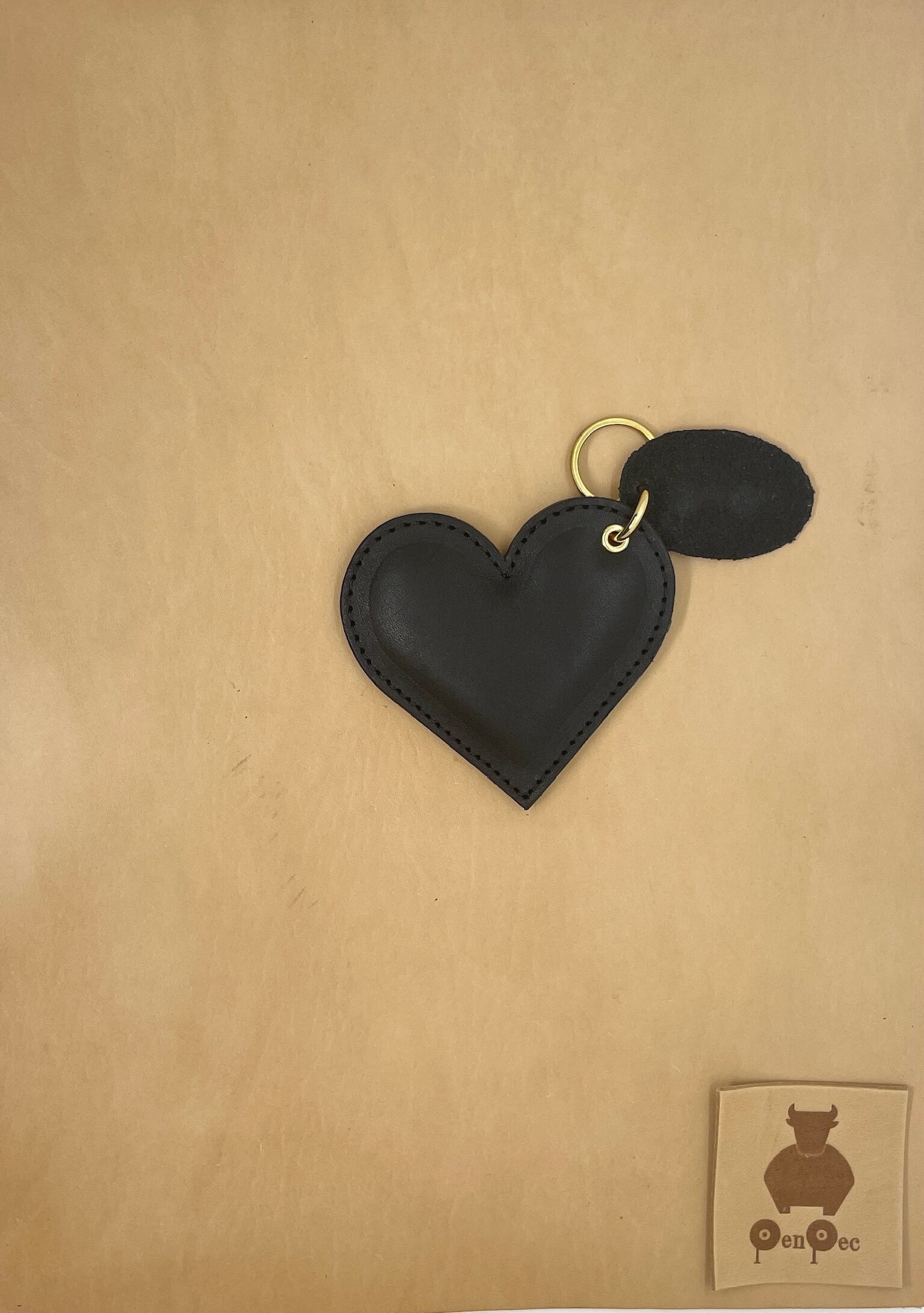 <靴職人の革小物>ぷっくりハートキーホルダー(ブラック)