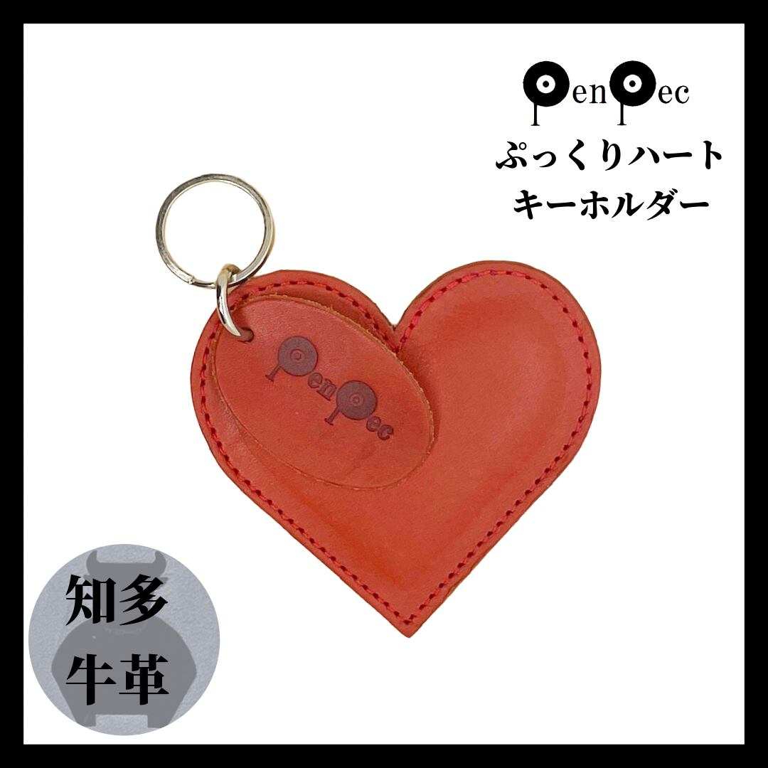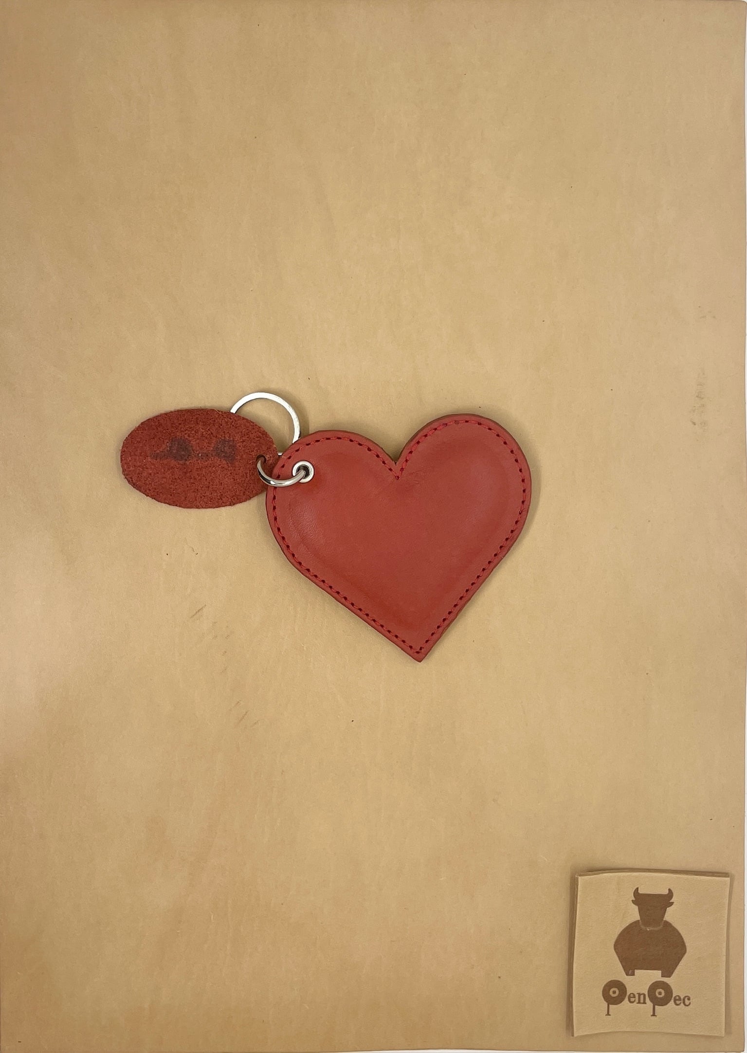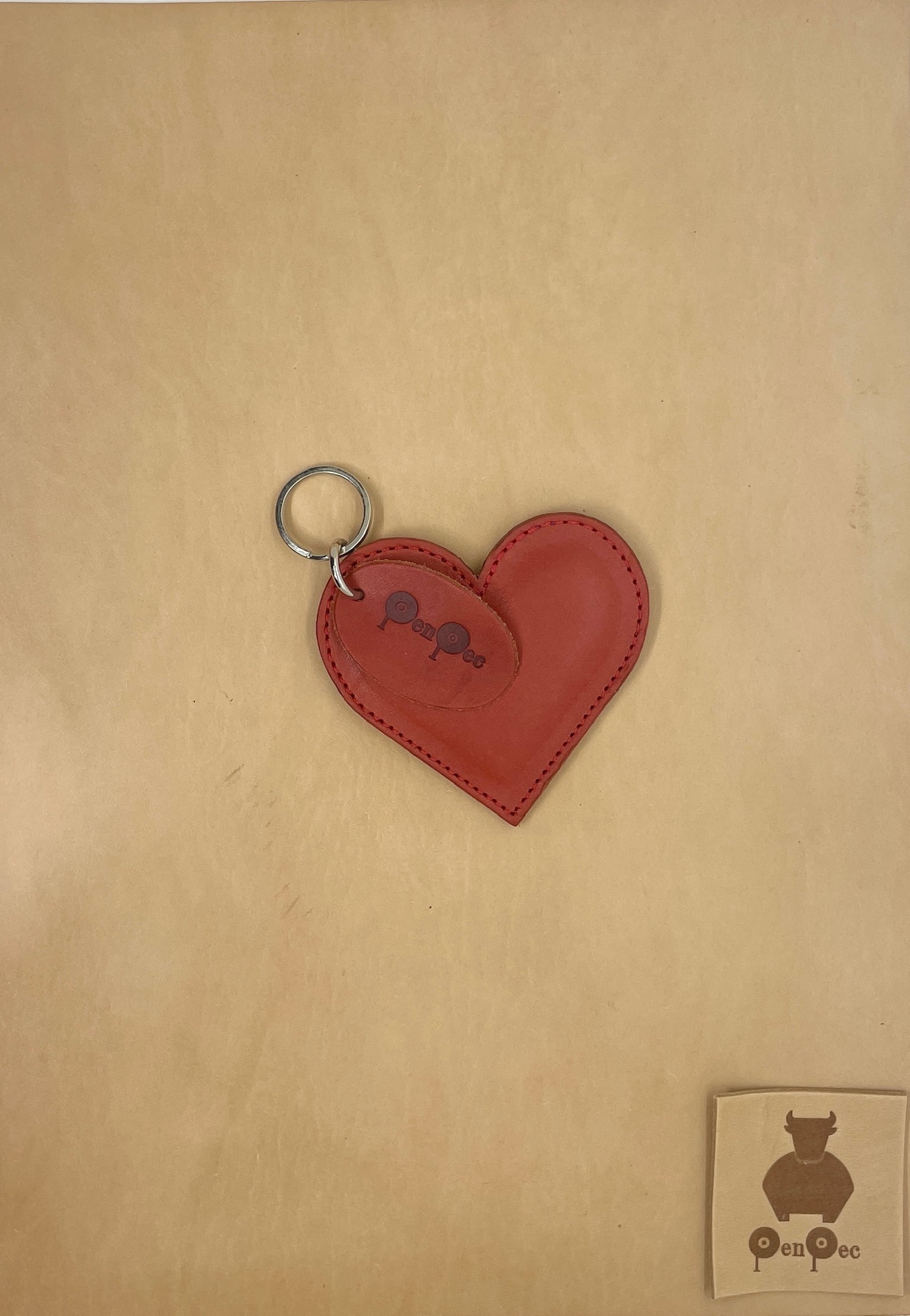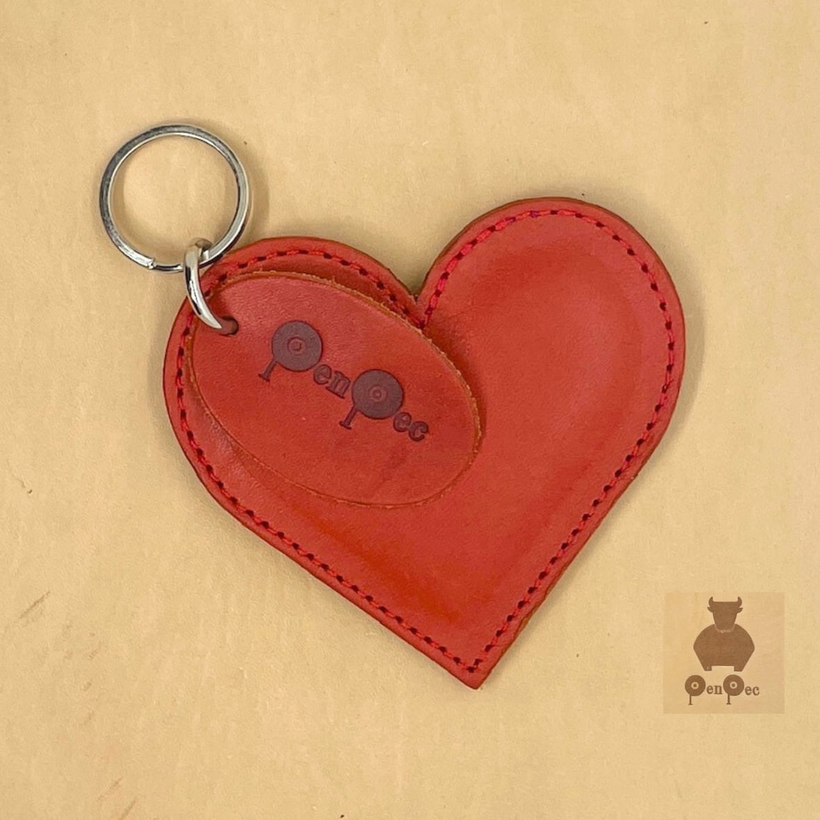 <靴職人の革小物>ぷっくりハートキーホルダー(レッド)