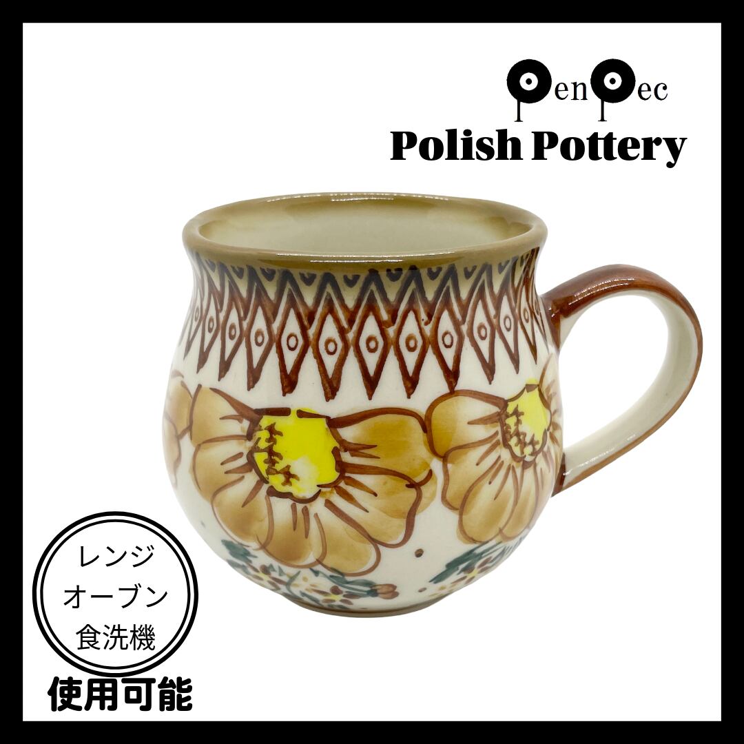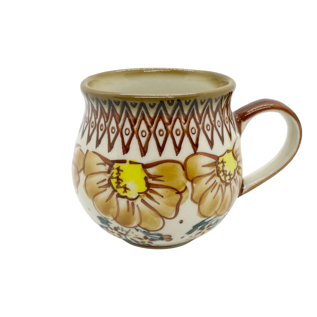茶色の大きな花がポイントの可愛らしいマグカップです。ポーリッシュポタリーのスタンプと手描きが融合されたCeramika Andarオリジナルのデザインです。ちょっと珍しい茶色のポーリッシュポタリーはいかがでしょうか。